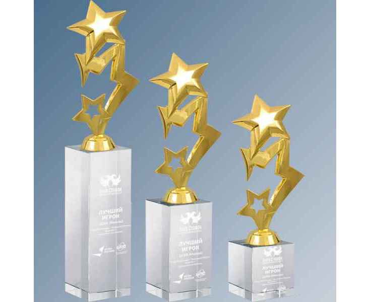«ОмниГифтс» занимается изготовлением наградной атрибутики с логотипами и надписями на заказ. Золото цвет изделия отражает уровень достижений награждаемого человека или коллектива. Размер награды – – оптимален для того, чтобы занять достойное место на полке. Памятный приз с памятной надписью и символикой события будет долгие годы радовать своего обладателя. Чтобы изделие получилось гармоничным, наши специалисты помогут подобрать лучший способ нанесения