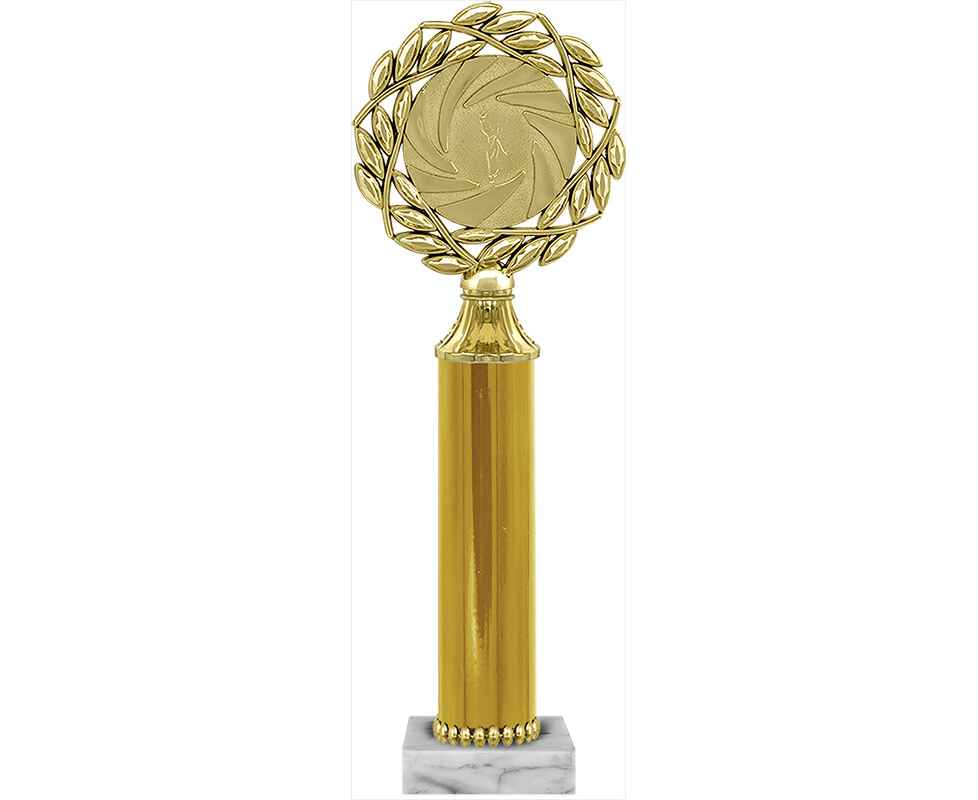 Наградная продукция, идеально подходящая для спортивных или корпоративных мероприятий. Средняя часть награды представляет собой металлическую трубу диаметром 30 мм.