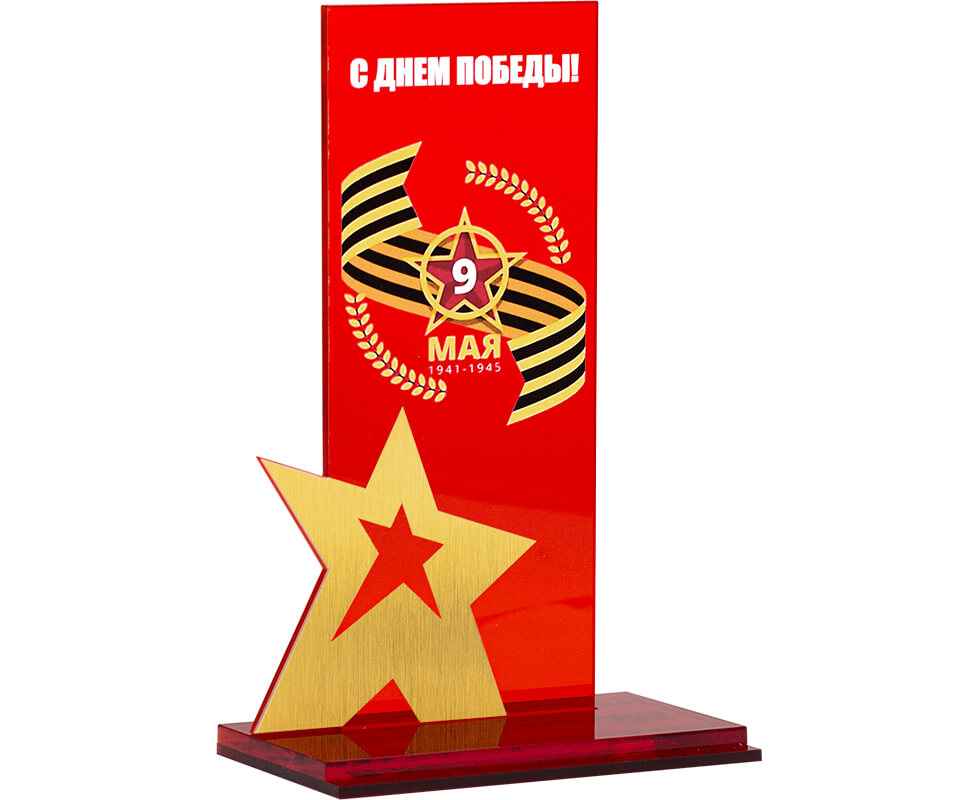 Памятные подарки с тематическим изображением 9 МАЯ. Награда из акрилового прозрачного красного стекла с УФ печатью 'С ДНЕМ ПОБЕДЫ! 9 МАЯ' ВНИМАНИЕ! На этот товар скидка ограничена.