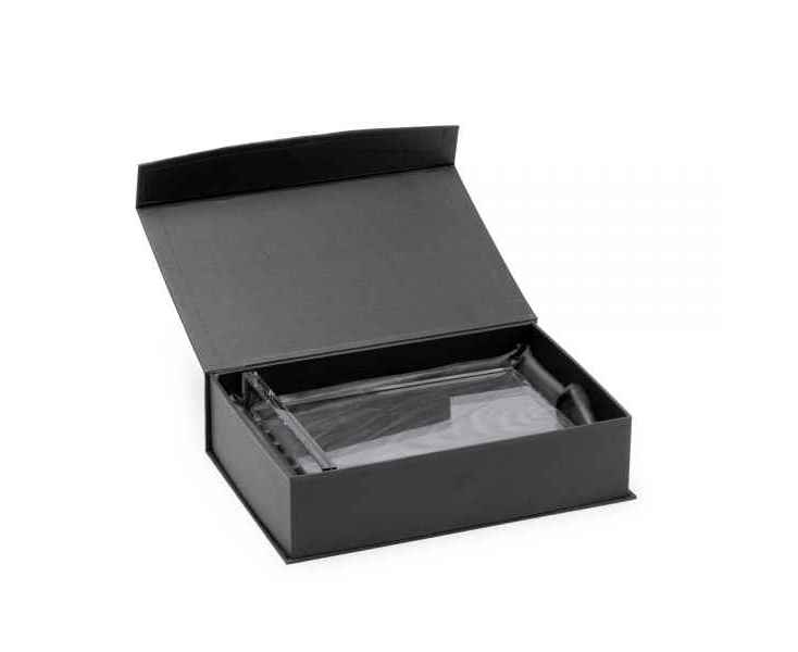 Стеклянная награда прямоугольной формы. Включает черный презентационный футляр.