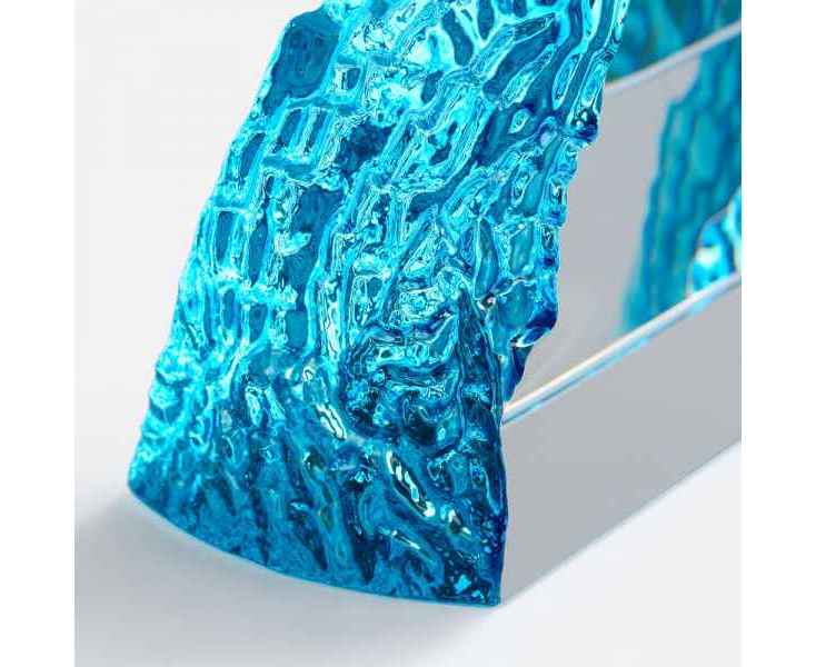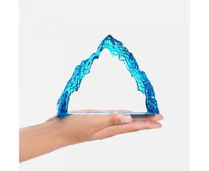 Необычная форма стелы, похожая на живописный горный хребет, символична и будет напоминать о покоренных высотах, вдохновляя на новые свершения. Эффект заснеженной вершины дополнительно усиливается благодаря голубоватому цвету.