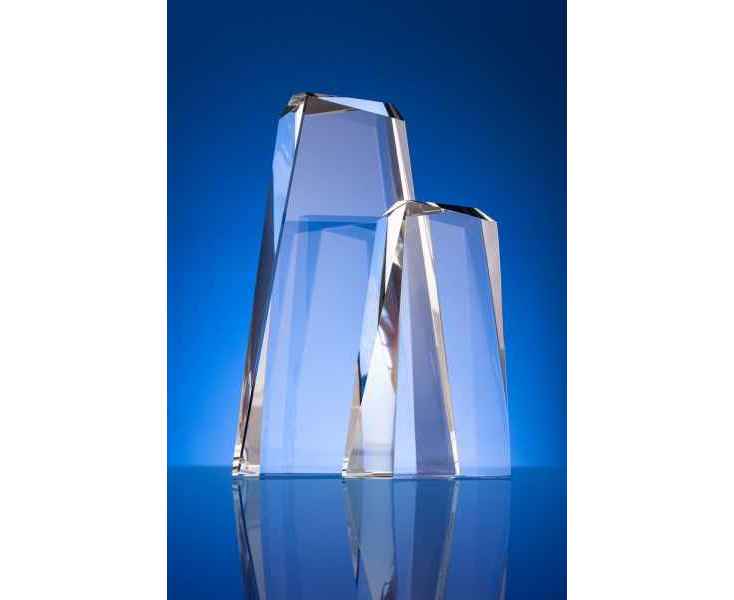 Стела изготовлена из стекла К9, в основе которого лежит оптическое боросиликатное стекло. Эту марку стекла отличает низкий процент посторонних включений, высокий показатель преломления и высокая прозрачность — идеальные качества для изготовления наград премиального уровня.