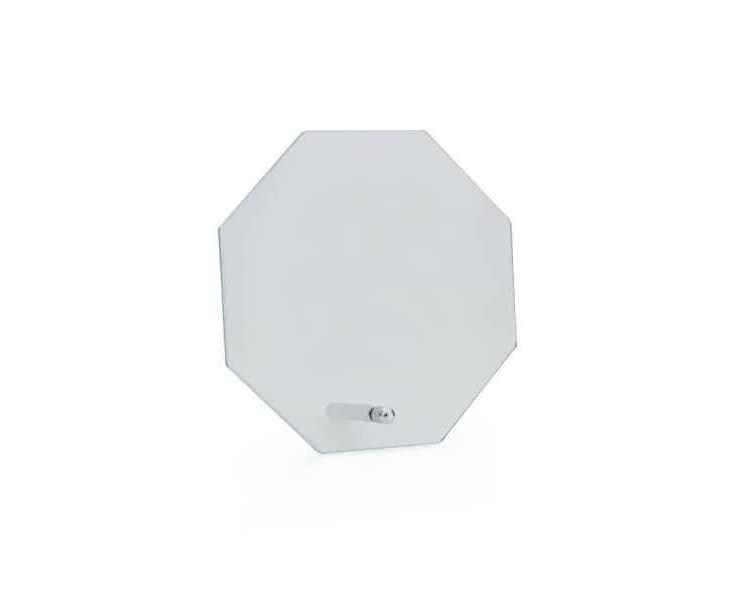 Награда в форме восьмиугольника из толстого стекла. Поставляется в подарочном футляре.