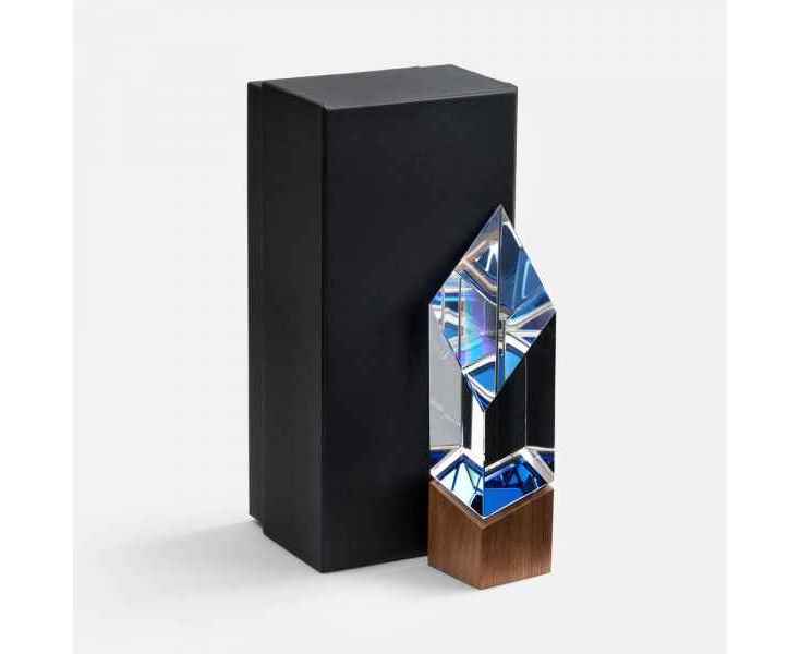 Эффектная стела на лаконичном деревянном постаменте Vincero создана для тех, чье дело сверкает разными гранями, а победный дух всегда ведет за собой! Внутри призматической стелы создается притягательная оптическая иллюзия, которая придает ей дополнительный объем и весомость. Такая геометрическая магия и игра света зачаровывают, воплощая собой все стороны таланта, которые привели получателя награды к заслуженному успеху.