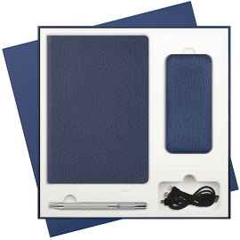 Подарочный набор Tweed, синий (ежедневник, ручка, аккумулятор)