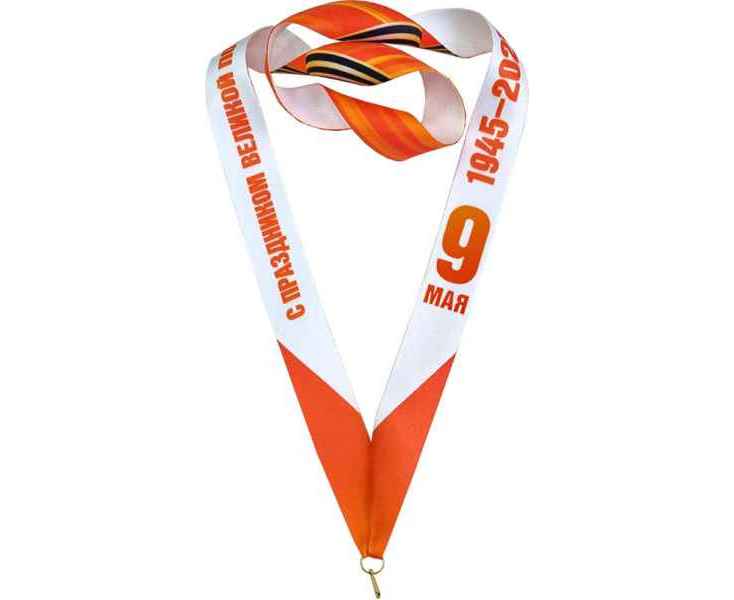 Лента для медали 9 МАЯ С ПРАЗДНИКОМ ВЕЛИКОЙ ПОБЕДЫ 1945-2025 (оранжевый)