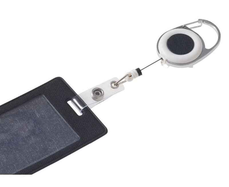 Прочный чехол для пропуска из экокожи с ретрактором. Ретрактор можно удобно закрепить на одежде, за ремень или карман брюк, например. При этом, когда пропуск нужно приложить к электронному считывающему устройству, достаточно просто слегка потянуть и будет получена необходимая длина.