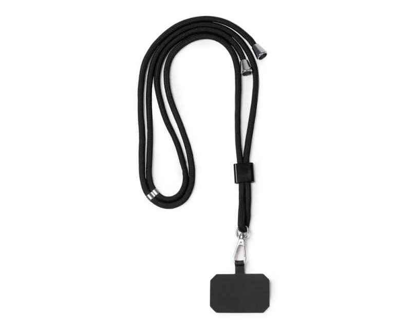 Держатель для мобильного телефона на шнурке из переработанного полиэстера RPET. Регулируемый ремешок, в комплект входит карабин.