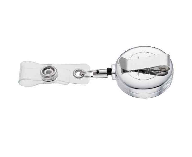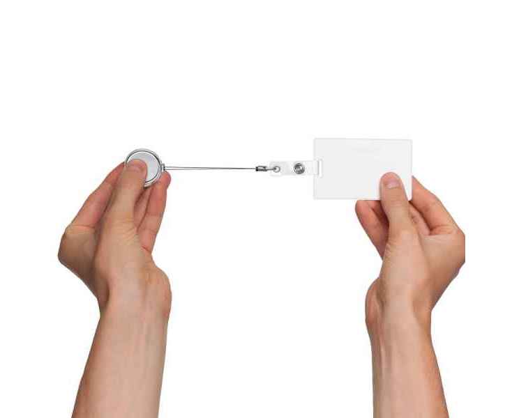 Ретрактор крепится к одежде, а с другой стороны можно поместить бейдж, визитку или магнитную карту. В корпусе спрятан сворачивающийся шнур, который позволяет при необходимости демонстрировать содержимое держателя, не снимая его.