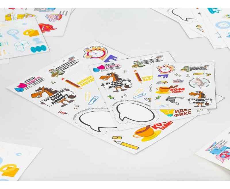 В стоимость входит полноцветная UV-печать наклеек на формате А5.