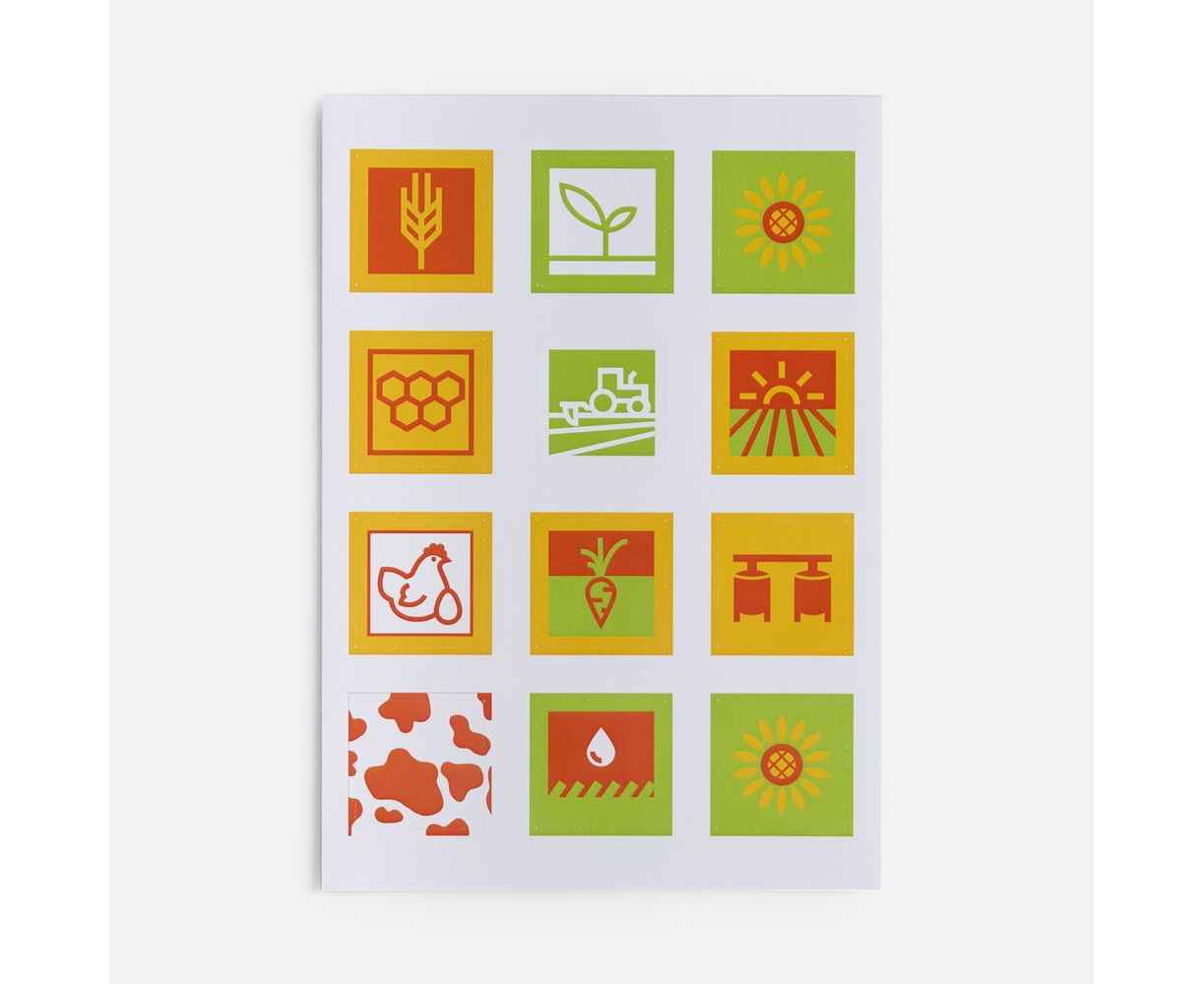 В каждой части общего рисунка изображены главные символы, связанные с сельским хозяйством