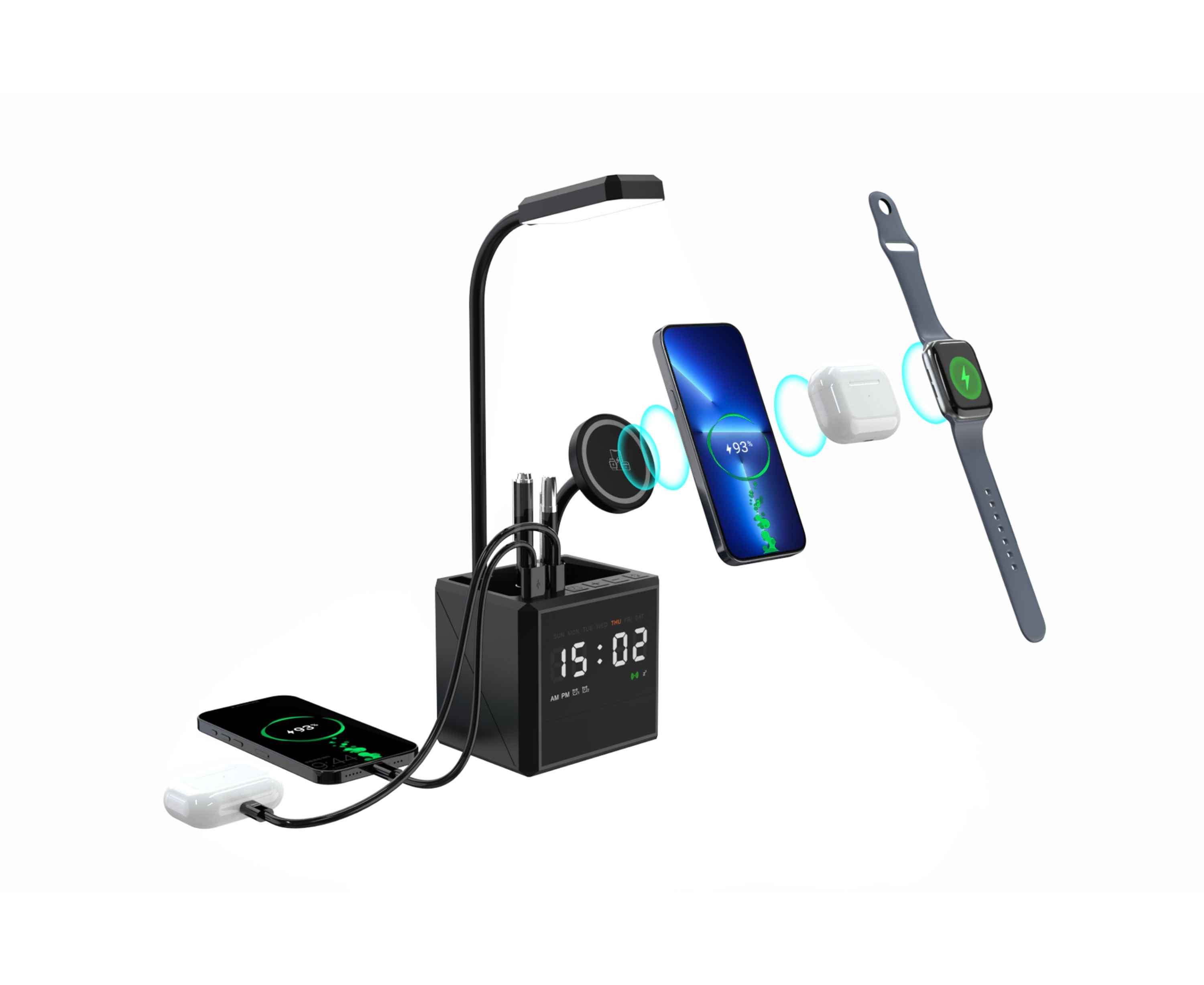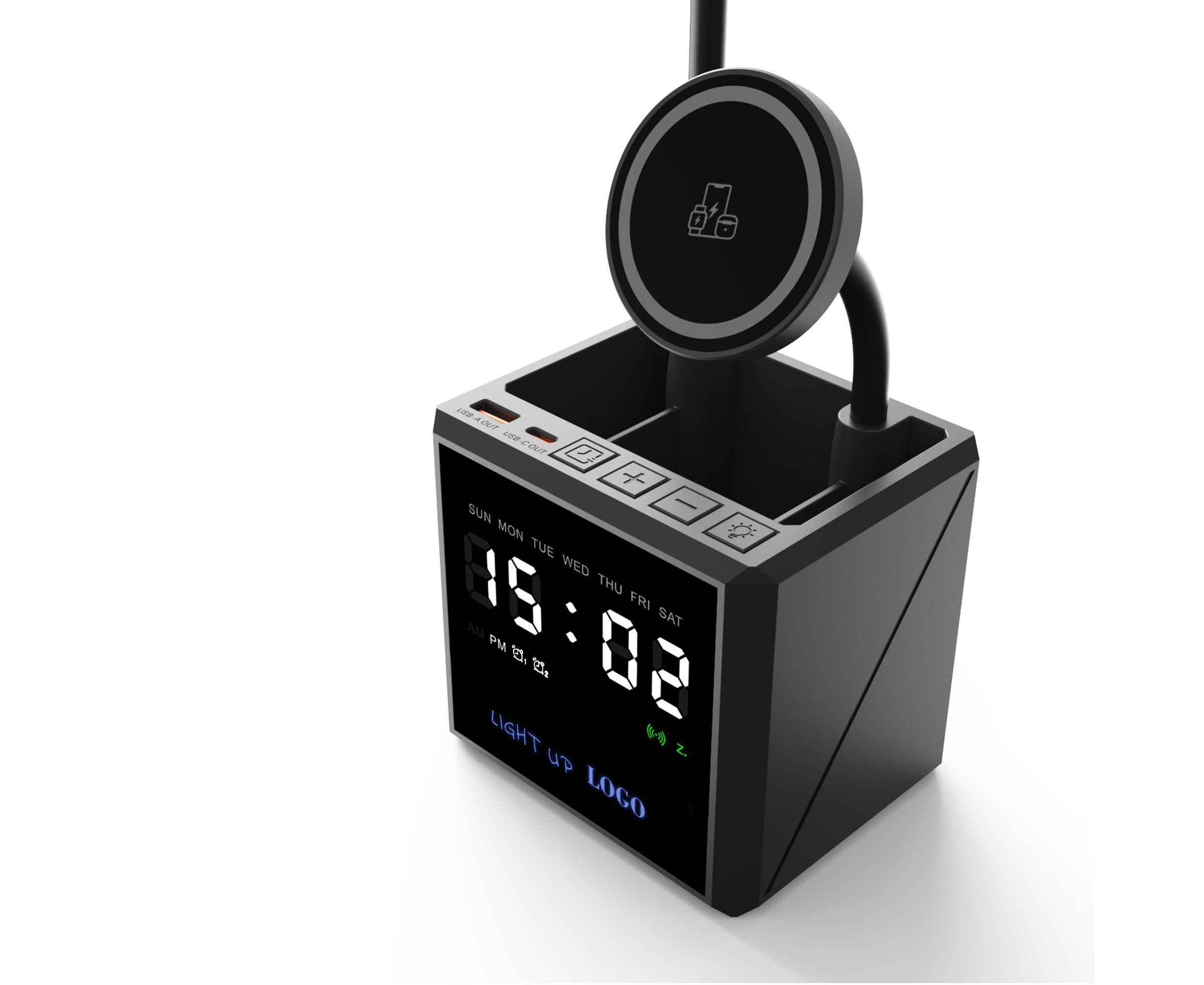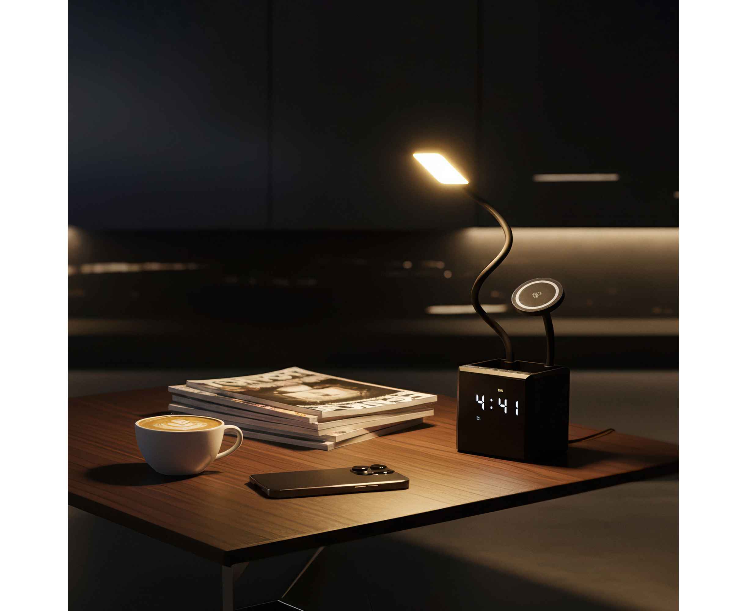 Подробнее о smart Лампа 'Smart Flex' с беспроводным 3в1 (15W) ЗУ с MagSafe, часами, карандашницей и подсветкой логотипа, черный