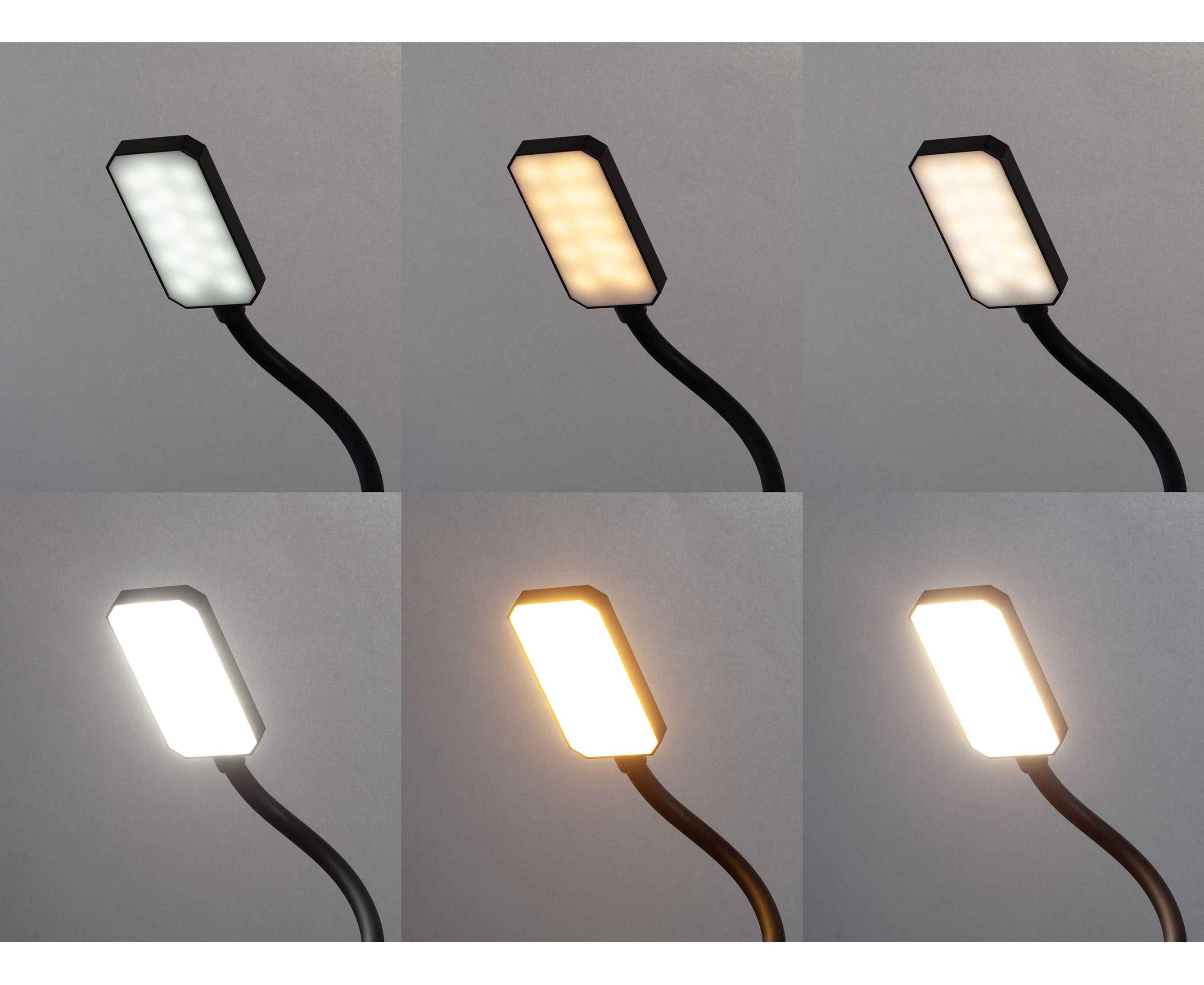- настольная лампа с тремя регулируемыми по яркости режимами светопотока – холодным, тёплым и сбалансированным;