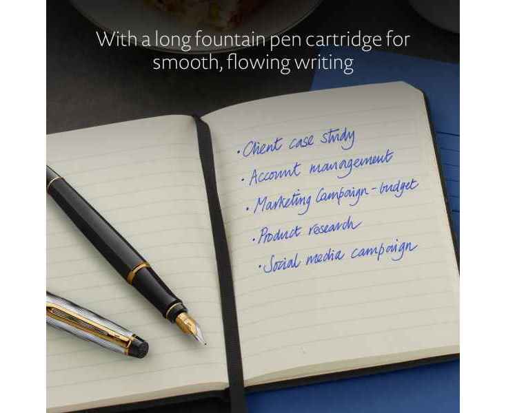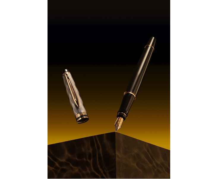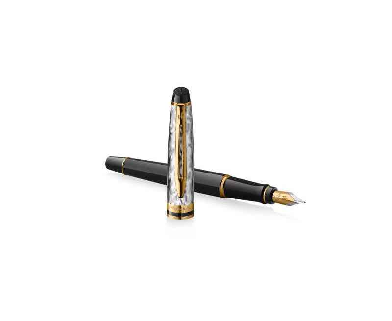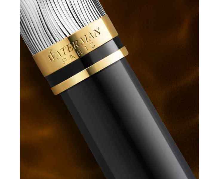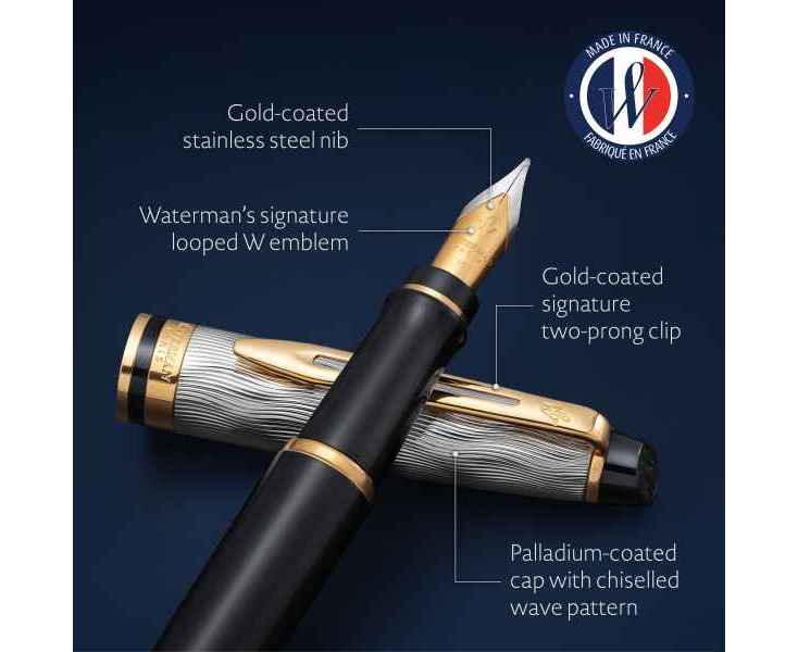 Покрытый черным лаком корпус Waterman Expert и позолоченная отделка создают романтическое настроение ночного парижского неба над золотыми отблесками городских кафе и уличных фонарей, а изысканный колпачок, покрытый палладием, с точеным волнообразным рисунком, идеально передает дух волнующихся волн Сены с мягким течением. Перо из нержавеющей стали с золотым покрытием дополняет классические элементы Waterman, такие как фирменный зажим с двумя зубцами и закругленная буква 'W'. Каждая ручка тщательно собирается вручную во Франции, демонстрируя галльское мастерство Waterman.