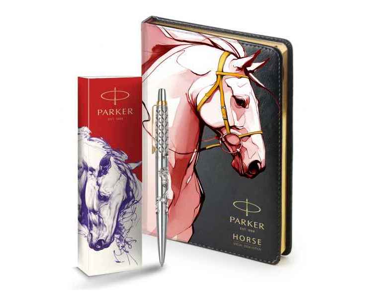 Подробнее о Parker Подарочный набор: Шариковая ручка Parker Jotter Horse Special Edition в подарочной коробке и ежедневник недатированный черный с золотым срезом