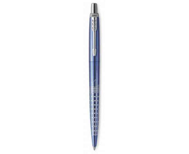 Ручка шариковая Parker 'Jotter Seoul Blue CT' из серии 'мировые мегаполисы' посвящена Сеулу. Линия письма- средняя, цвет письма- синий. Корпус ручки изготовлен из нержавеющей стали, покрыт голубым матовым лаком с лазерной гравировкой украшена узорами, вдохновленными современной архитектурой этого динамичного города. Ручка упакована в оригинальную картонную подарочную коробку Parker, которая передает яркую энергию сеульского горизонта с его элегантными небоскребами и инновационными сооружениями. Сделано во Франции.