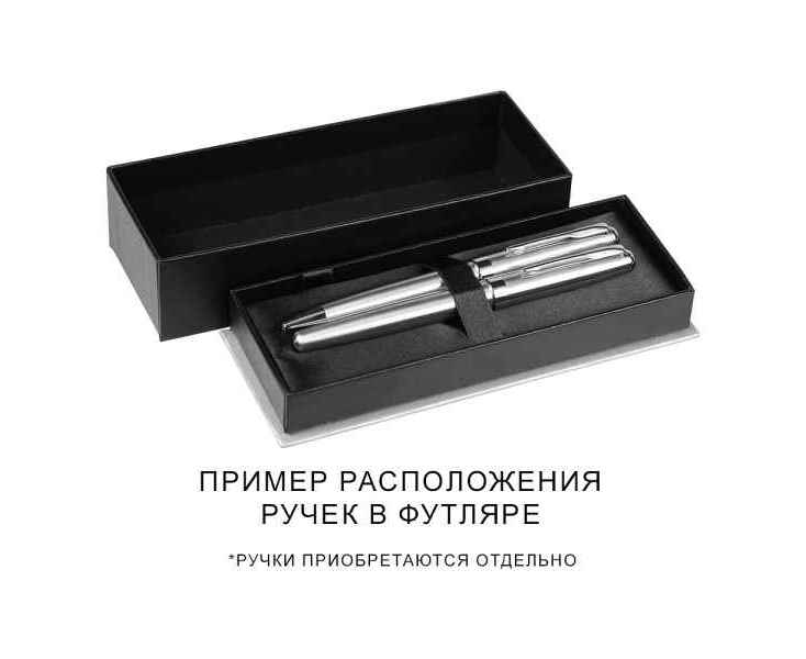 Футляр для одной или двух ручек станет практичным дополнением бизнес-подарка. Основа изготовлена из плотного высококачественного картона, вкладыш футляра имеет гладкую, приятную на ощупь текстуру. Пишущий инструмент закрепляется с помощью резинки.