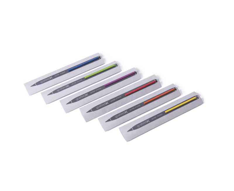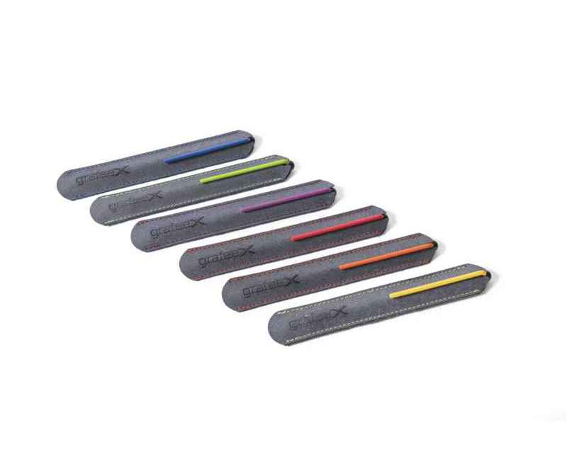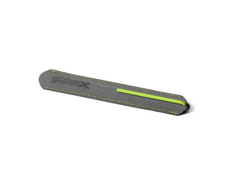 Инновационный, совершенно необычный карандаш с цельным алюминиевым матовым корпусом черного цвета, ярко-зеленым клипом и пишущим наконечником из материала GrafeeX. GrafeeX - это запатентованный инновационный материал, полученный в результате спекания мелких частиц графита при высоких температурах. То есть он пишет, как обычный графитовый карандаш, но из-за высокой плотности материала крайне экономно расходуется, и его хватает очень надолго. Карандаш вкладывается в элегантный темно-серый чехол с контрастной прострочкой в цвет клипа, сшитый вручную из рециклированной кожи. GrafeeX станет идеальным помощником в повседневной жизни: для заметок, для набросков или просто для записи идей на бумаге.