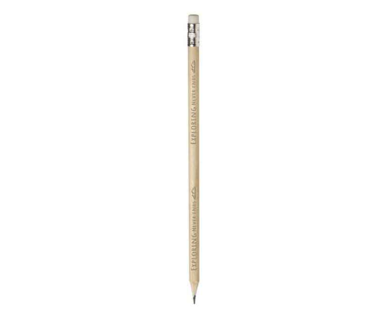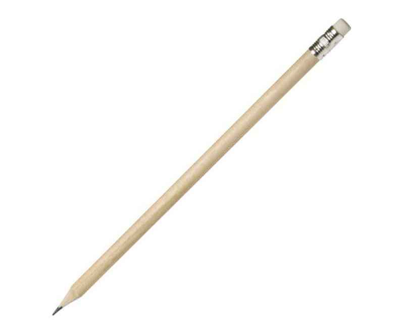 Карандаш с ластиком. Карандаш изготовлен из тополевой древесины, ластик — из графита, а обойма — из алюминия. Дерево.