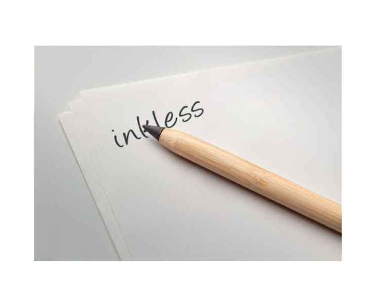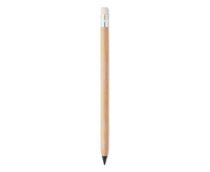 Вечный карандаш в бамбуковом корпусе с ластиком. Карандаш пишет засчет окисления поверхности бумаги наконечником из металлического сплава.