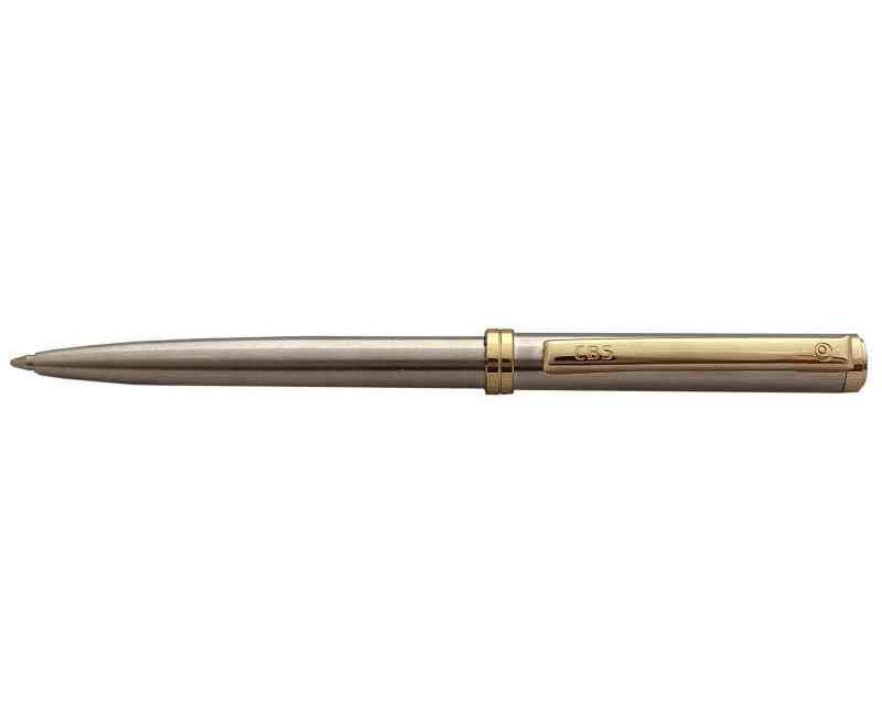 Письменные принадлежности в металлическом корпусе, фурнитура из позолоченного металла. Механика нажимного колпачка, качественный металлический суперобъёмный стержень с синей пастой.