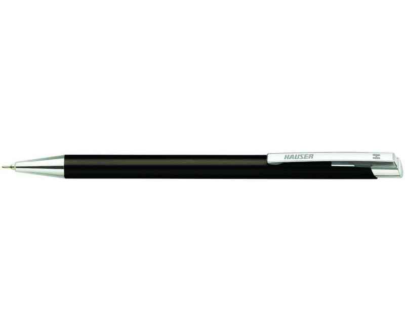 Шариковая авторучка, с нажимным механизмом . Корпус металлический с глянцевой хромированной отделкой .Стержень тонкий пластиковый с синей пастой . Толщина линии 0,5 мм