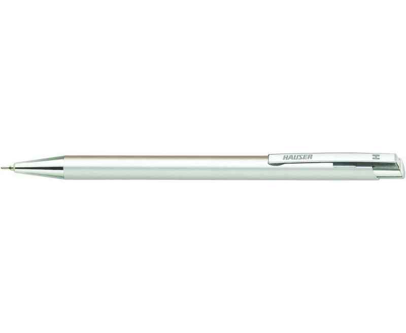 Шариковая авторучка, с нажимным механизмом . Корпус металлический с глянцевой хромированной отделкой .Стержень тонкий пластиковый с синей пастой . Толщина линии 0,5 мм