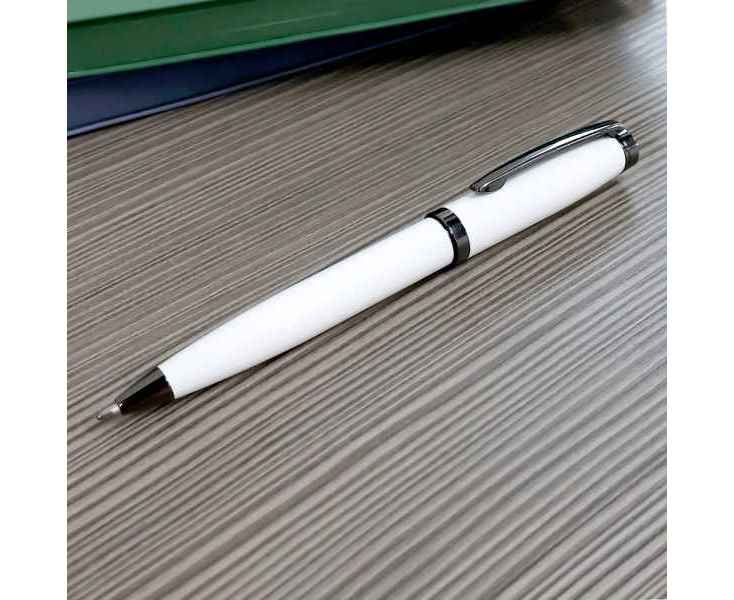 Наша Бетти — подарок для любителей более увесистых и солидных форм. Общий вес ручки — 33 грамма! У нашей красотки поворотный механизм, покрытый глянцем корпус из нержавеющей стали, стержень Паркер 0,7 мм с синими чернилами. Элементы ручки: клип, кольцо и дюбка покрыты ган-метал краской. Ручку приятно держать в руке и демонстрировать публике.