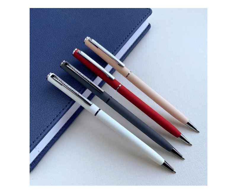 Автоматическая металлическая ручка Bruno Visconti серии Palermo однотонного цвета порадует любителей всего изящного и утонченного. Покрытие корпуса Soft Touch гарантирует дополнительный комфорт в работе с ней. Стержень легко выдвигается благодаря поворотному механизму. Синие пигментные чернила Dokumental (Германия) и пишущий узел Premec (Швейцария) обеспечивают качественное и мягкое письмо.