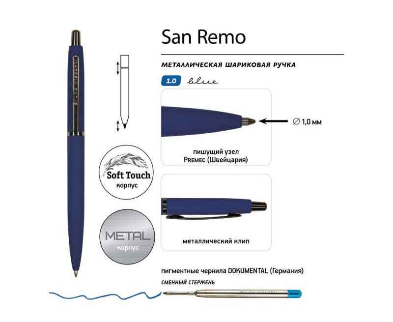 Металлическая шариковая ручка San Remo - аксессуар, призванный стать настоящим элементом стиля, подчеркнуть индивидуальность его владельца.