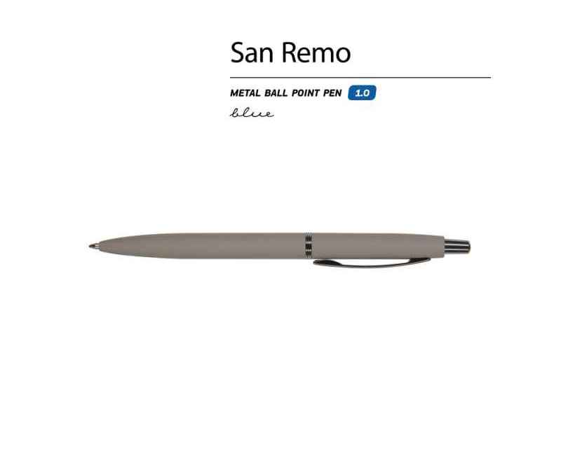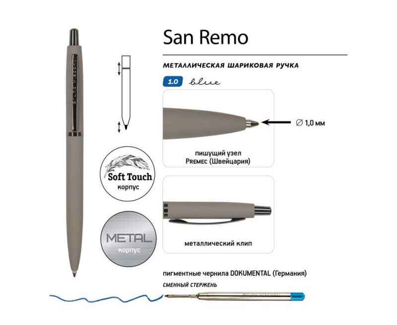 Металлическая шариковая ручка San Remo - аксессуар, призванный стать настоящим элементом стиля, подчеркнуть индивидуальность его владельца.