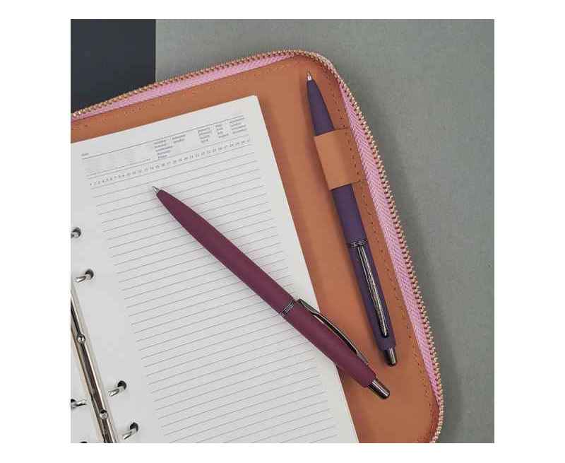 В ручке нет ничего лишнего, но она привлекает к себе внимание: изящна благодаря плавным линиям, эргономичному корпусу и приятна на ощупь, благодаря покрытию soft-touch. Контраст добавляют кольцо и клип из серебристого металла. Отличный бизнес-сувенир!