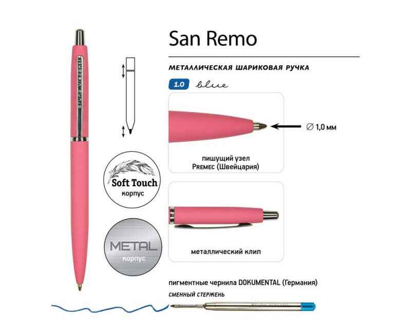 Металлическая шариковая ручка San Remo - аксессуар, призванный стать настоящим элементом стиля, подчеркнуть индивидуальность его владельца.