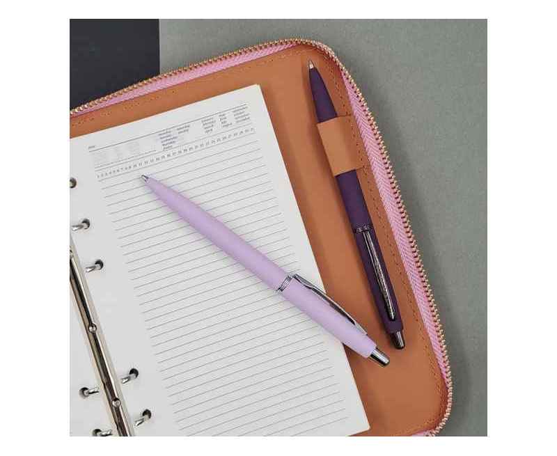 В ручке нет ничего лишнего, но она привлекает к себе внимание: изящна благодаря плавным линиям, эргономичному корпусу и приятна на ощупь, благодаря покрытию soft-touch. Контраст добавляют кольцо и клип из серебристого металла. Отличный бизнес-сувенир!