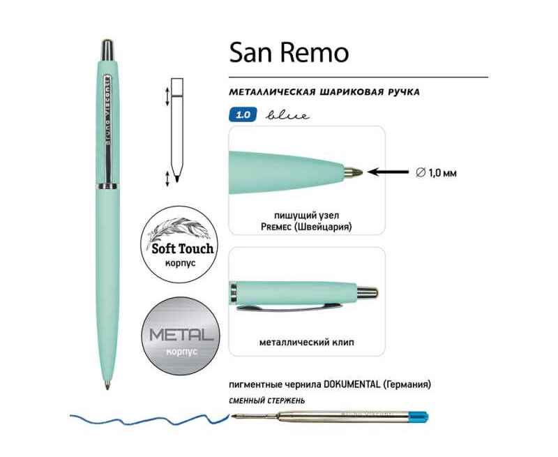 Металлическая шариковая ручка San Remo - аксессуар, призванный стать настоящим элементом стиля, подчеркнуть индивидуальность его владельца.