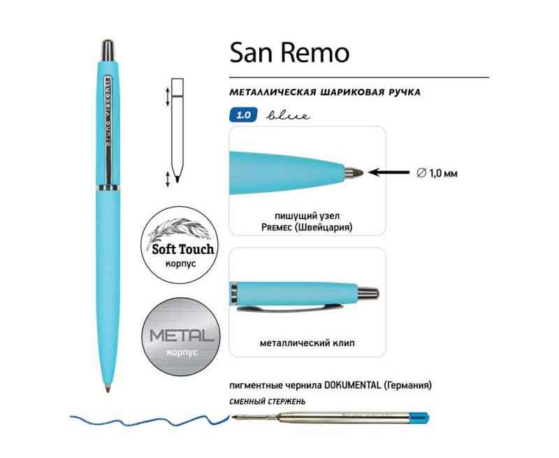 Металлическая шариковая ручка San Remo - аксессуар, призванный стать настоящим элементом стиля, подчеркнуть индивидуальность его владельца.