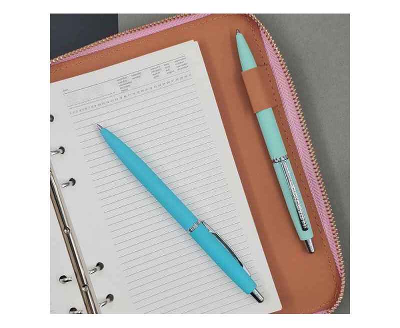 В ручке нет ничего лишнего, но она привлекает к себе внимание: изящна благодаря плавным линиям, эргономичному корпусу и приятна на ощупь, благодаря покрытию soft-touch. Контраст добавляют кольцо и клип из серебристого металла. Отличный бизнес-сувенир!