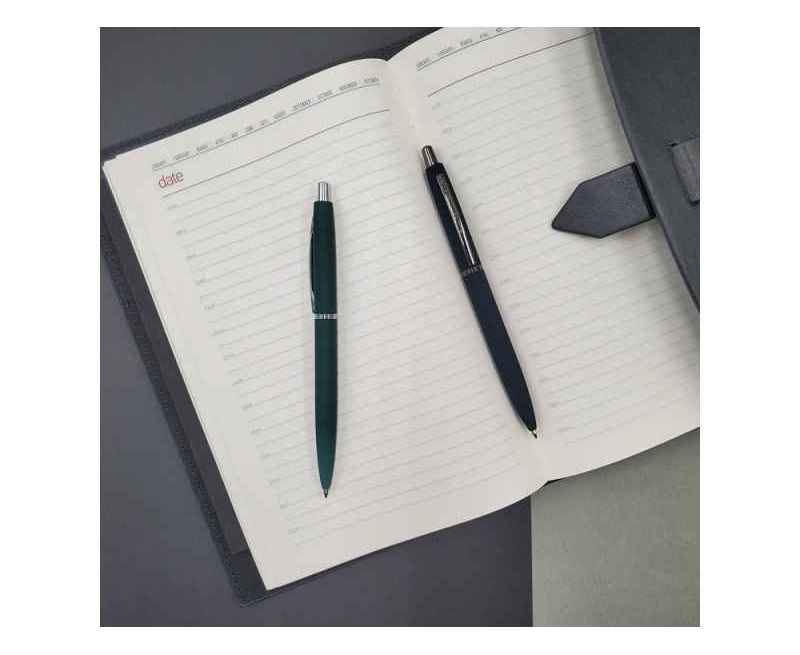 В ручке нет ничего лишнего, но она привлекает к себе внимание: изящна благодаря плавным линиям, эргономичному корпусу и приятна на ощупь, благодаря покрытию soft-touch. Контраст добавляют кольцо и клип из серебристого металла. Отличный бизнес-сувенир!