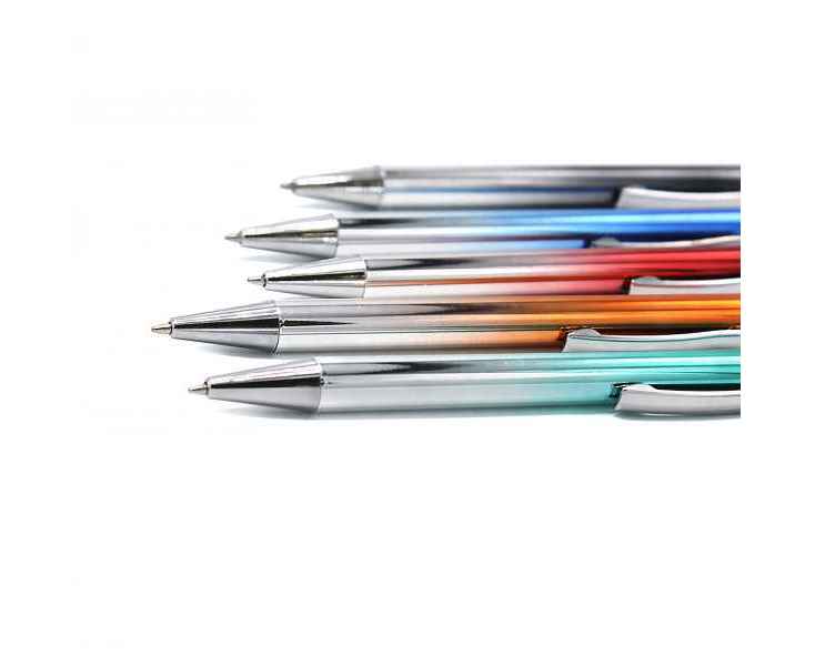 Ослепительный дизайн и нестандартная окраска выделяю эту модель ручки на фоне остальных. Ручка Синергия имеет градиентное покрытие, а на корпусе можно гравировать вашу корпоративную символику. Толщина пишущего узла 1 мм, длина письма рассчитана на 700 м.