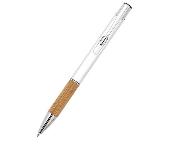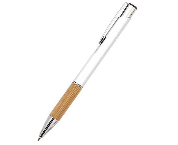 Металлическая шариковая ручка представительского класса. Глянцевые детали отделки с бамбуковой вставкой. Толщина пишущего узла 1 мм, длина письма рассчитана на 700 м.