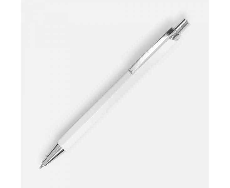Металлическая шариковая ручка в глянцевом шестигранном корпусе с хромированными деталями.