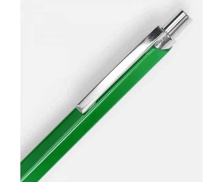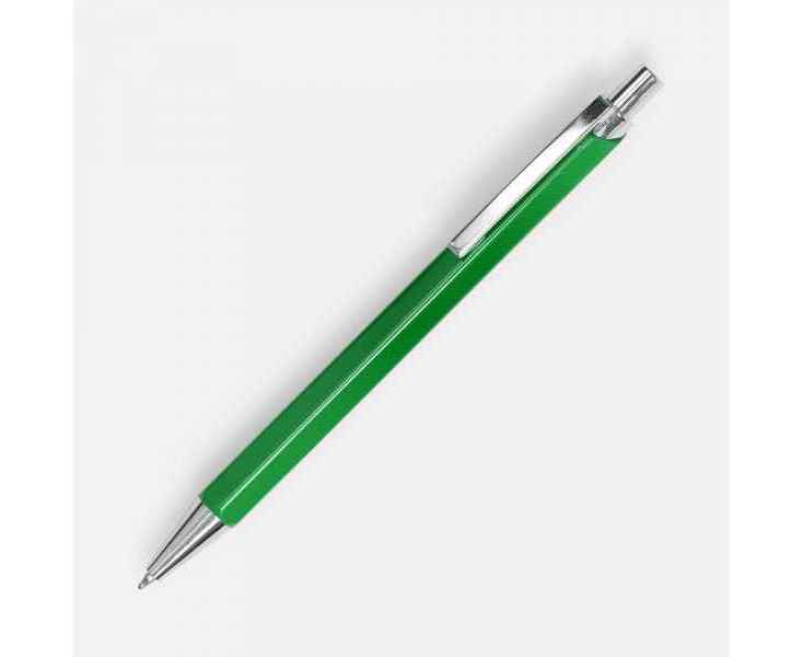 Металлическая шариковая ручка в глянцевом шестигранном корпусе с хромированными деталями.