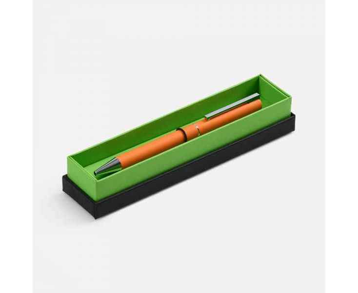 Элегантная ручка Blade в металлическом корпусе с покрытием софт-тач. Футляр из дизайнерской бумаги с контрастным коробом придает подарку законченный вид.