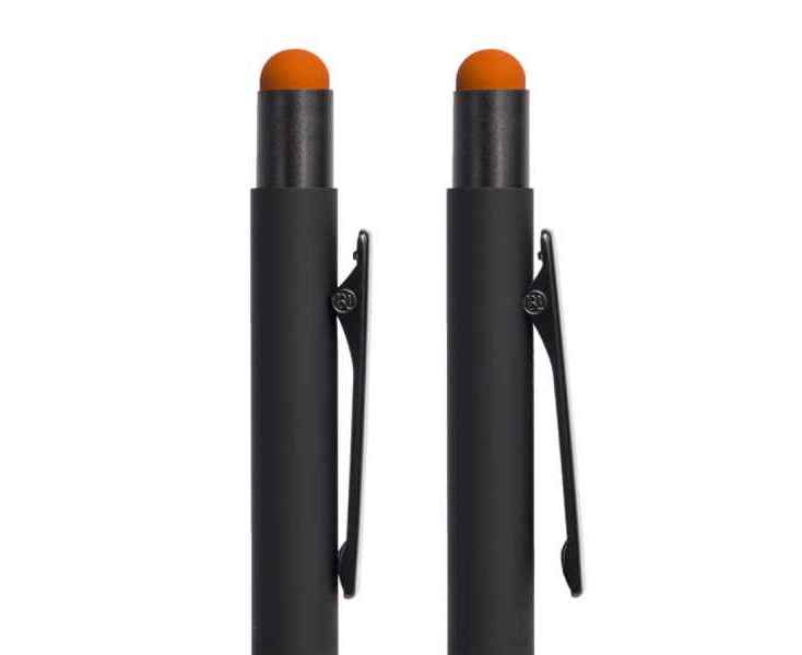 Подробнее о B1 Ручка шариковая FACTOR BLACK со стилусом, черный/оранжевый, металл, пластик, софт-покрытие