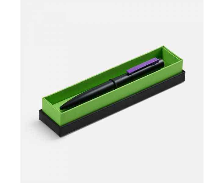 Стильная металлическая ручка Inkolor в матовом черном корпусе с цветным клипом. Футляр из дизайнерской бумаги с контрастным коробом придает подарку законченный и элегантный вид.