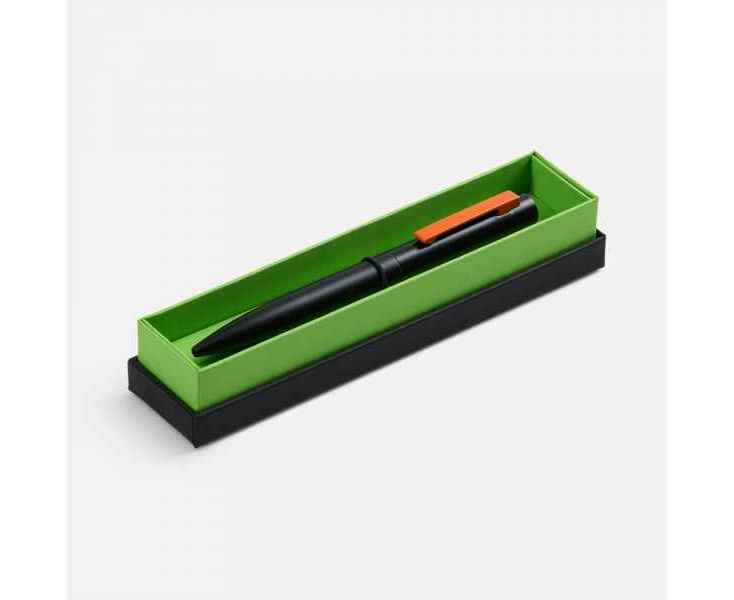 Стильная металлическая ручка Inkolor в матовом черном корпусе с цветным клипом. Футляр из дизайнерской бумаги с контрастным коробом придает подарку законченный и элегантный вид.