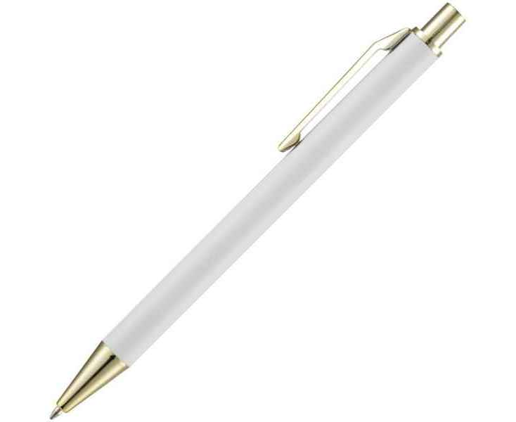 Шариковая ручка с покрытием софт-тач и золотистыми деталями. Клип оригинальной формы.