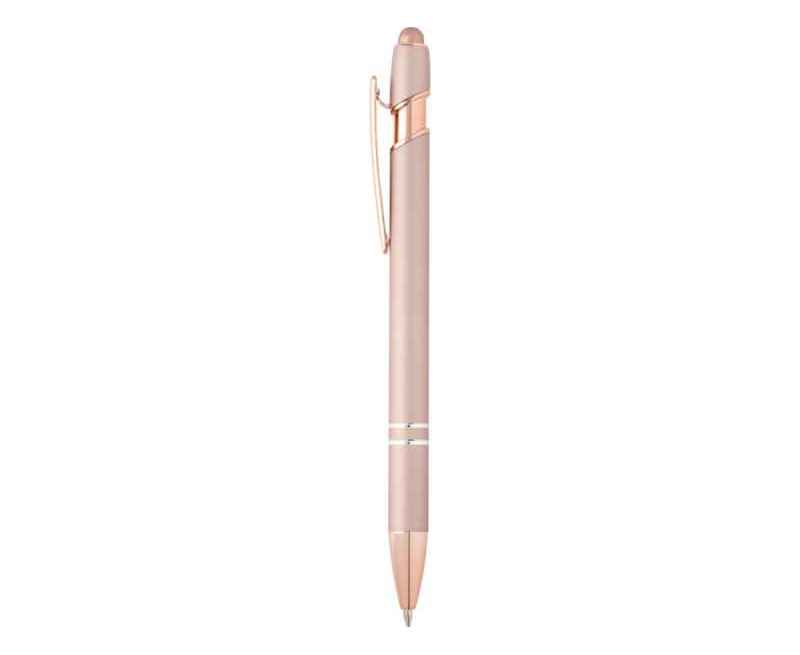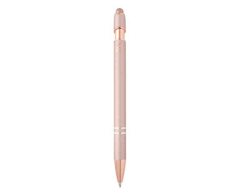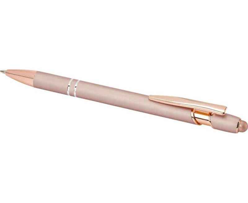 Шариковая ручка Nanna с покрытием из розового золота имеет корпус из переработанного алюминия и сенсорный стилус из силикона. Переработанный алюминий уменьшает количество отходов на свалках и помогает сохранять природные ресурсы для сокращения выбросов парниковых газов. Цвет чернил: синий. Длина непрерывной линии: 800 метров. Размер пера: 1,0 мм. Recycled Aluminium.