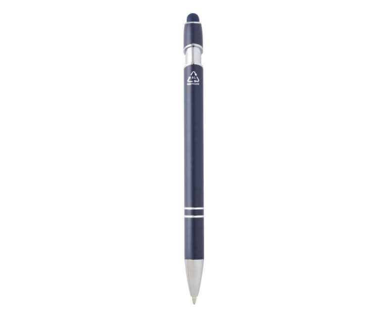Шариковая ручка Kish с серебряным покрытием имеет корпус из переработанного алюминия и сенсорный стилус из силикона. Переработанный алюминий уменьшает количество отходов на свалках и помогает сохранять природные ресурсы для сокращения выбросов парниковых газов. Цвет чернил: синий. Длина непрерывной линии: 800 метров. Размер пера: 1,0 мм. Recycled Aluminium.