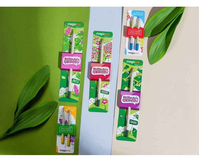 Растущий карандаш сделан из бумаги и на кончике у него желатиновая растворяющаяся капсула с семенами гвоздики.
